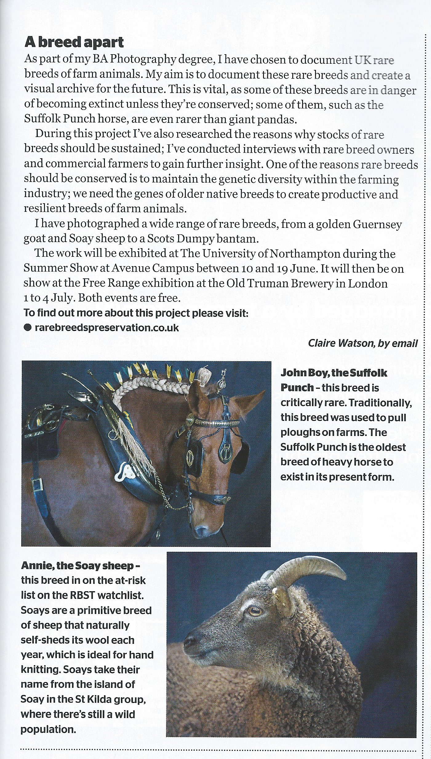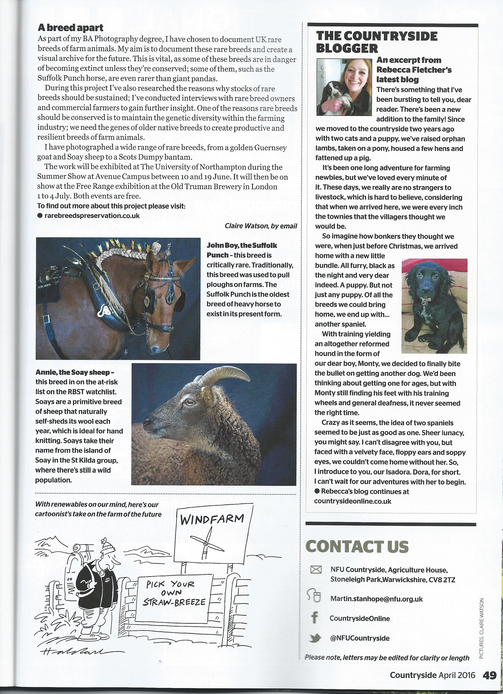 Article about my Rare Breeds Photography project in the Countryside Magazine.